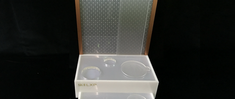 桌上型化妝品展示架, L 型白色壓克力座+透明上蓋設計,依客戶要求加入指定尺寸之: