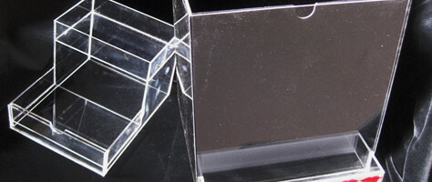 彩妝櫃內的產品陳列盒,前方可放置廣告插卡,二個內裝盒皆可移出以利放置產品,可陳列口紅。