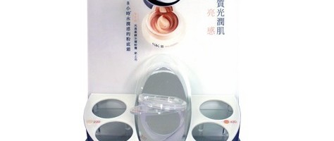 桌上型化妝品展示架,背版印刷裱褙,珠光效果面板,正中央橢圓鏡板,LOGO紅色水晶刻字,襯托產品細緻柔滑的質感。